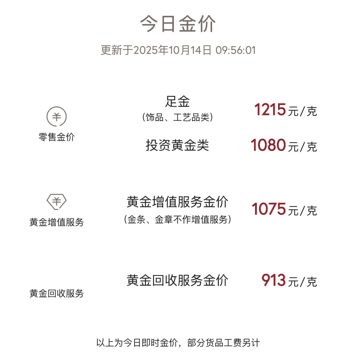 紧跟国际市场波动,国内金饰价格应声上涨,多个品牌金饰价格突破1200元/克。截至发稿,周生生金饰报价1213元/克,周大福金饰报1215元/克,均较昨日上涨25元/克;老凤祥金饰报1206元/克,较昨日上涨24元/克;老庙黄金金饰报1218元/克,较昨日上涨29元/克。